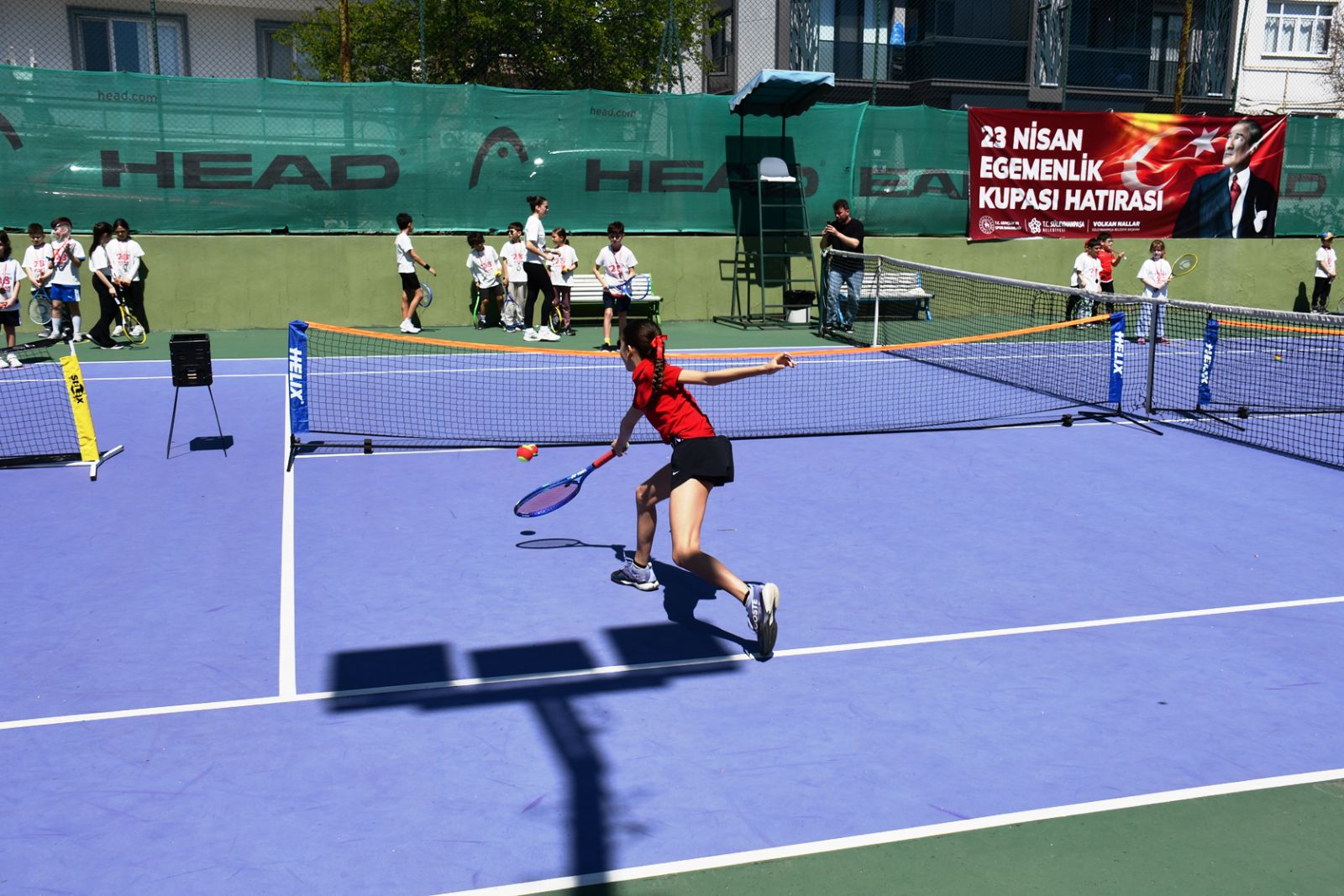 Geleceğin tenis yıldızlarının turnuva için kortlara çıktığı organizasyonda 150 minik sporcu şampiyonluk için değil, bayram coşkusu için raket salladı.