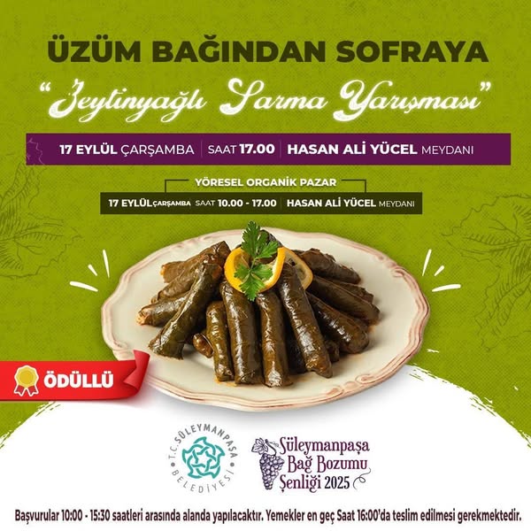 Süleyman paşa’da Bağ Bozumu Coşkusu: Sarma Yarışması ve Organik Pazar Başlıyor