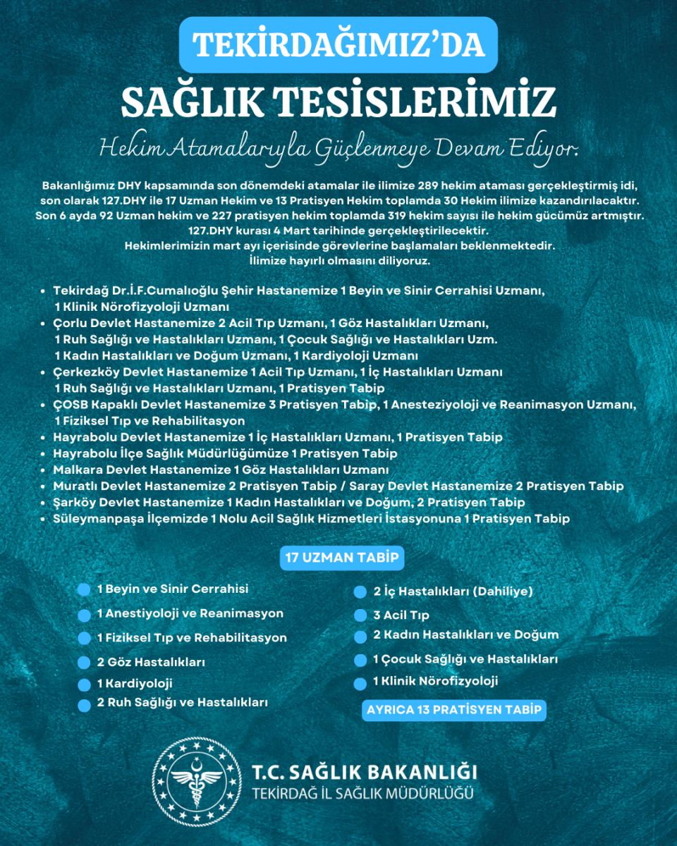 Sağlık Tesislerimiz Hekim Atamalarıyla Güçlenmeye Devam Ediyor.