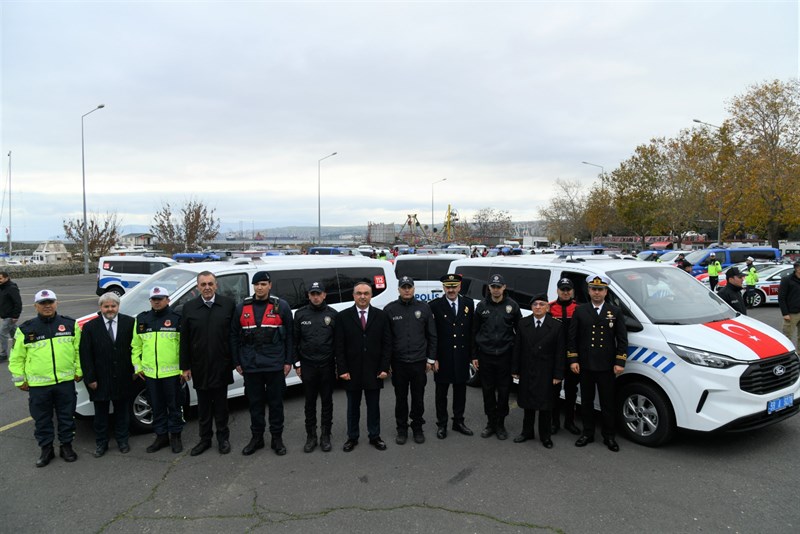 Törenin ardından ilimize gönderilen 41 emniyet aracı ile 23 jandarma aracını, İl Emniyet Müdürlüğü ve İl Jandarma Komutanlığına teslim etmek amacıyla Sahil Dolgu Alanı’nda tören düzenlendi.