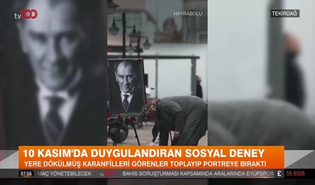 11 ilçede farklı alanlara Atatürk portreleri ve yere dökülmüş kırmızı karanfiller bırakıldı. Kaydedildiklerinden habersiz Tekirdağlılar, yerdeki karanfilleri saygıyla alıp Atatürk portresine bıraktılar. Bazıları portreyi selamlarken, bazıları da fotoğraf çektirdi. Her yaştan vatandaşın içten tepkileriyle ortaya çıkan o duygusal anlar kayda alındı. Genç, yaşlı, kadın, erkek demeden herkesin gösterdiği saygı, Atatürk sevgisinin toplumsal hafızadaki yerini bir kez daha gözler önüne serdi.