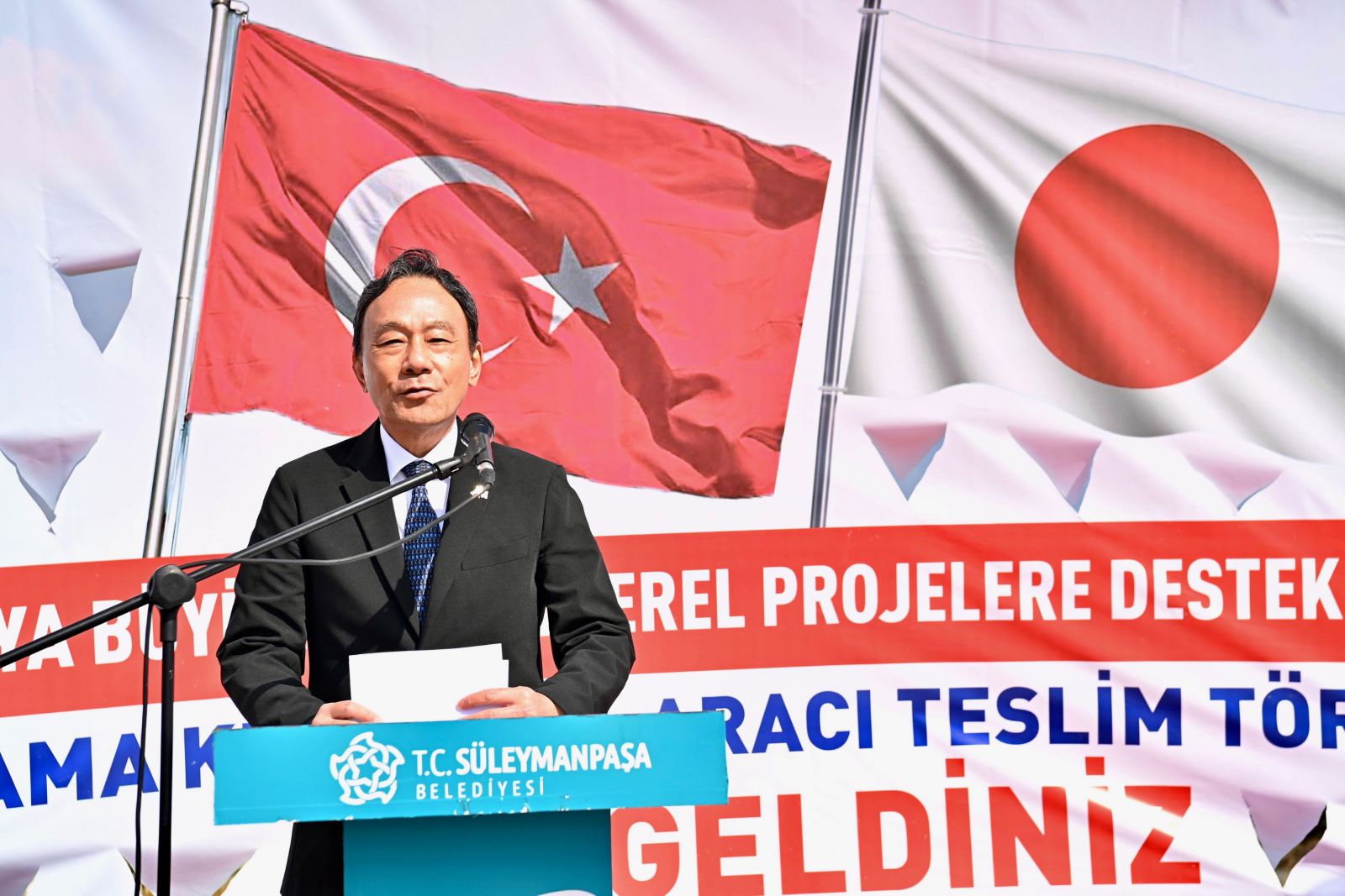 Süleymanpaşa Belediyesi araç filosuna katılan ve arama kurtarma ekipmanları ile elektronik haberleşme teçhizatını taşıyacak olan taşıt için Afet İşleri Müdürlüğü hizmet binasında teslim töreni düzenlendi. Süleymanpaşa Belediye Başkanı Volkan Nallar’ın ev sahipliğinde düzenlenen törende Japonya Büyükelçisi KatsumataTakahiko ve beraberindeki heyet hazır bulunurken, ayrıca Süleymanpaşa Kent KonseyiBaşkanı Hülya Çetin, Tekirdağ İl Afet ve Acil Durum (AFAD)Müdürü Taha Yasin Çekiç, belediye başkan yardımcıları, ilgili birim müdürleri ve basın mensupları da törene ilgi gösterdi. Başkan Nallar, tören öncesinde Büyükelçi Takahiko’yu Tarihi Belediye Binasında misafir etti.