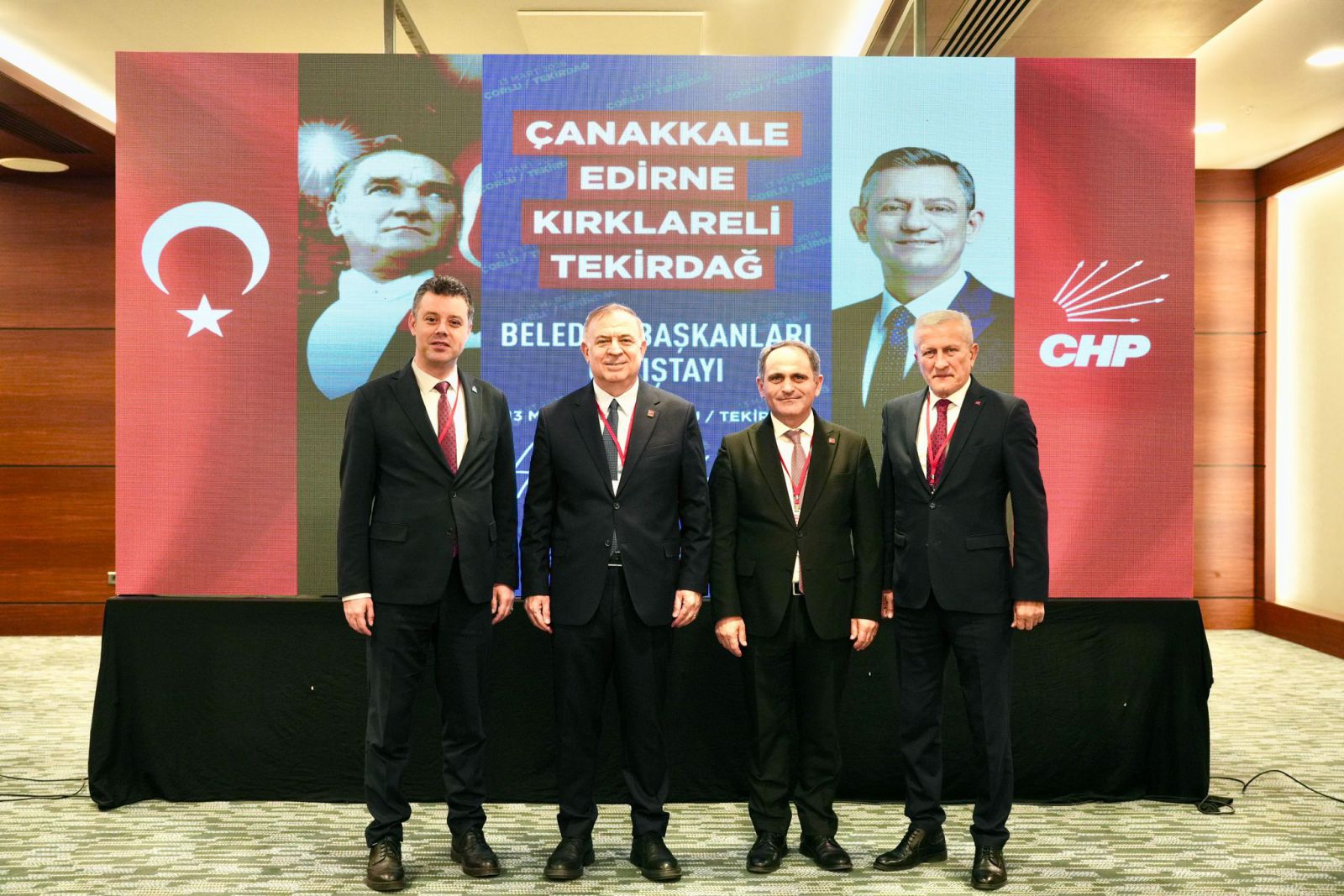 Çanakkale, Edirne, Kırklareli ve Tekirdağ’dan belediye başkanlarının yanı sıra il, ilçe ve belde başkanlarının da katılımıyla Çorlu’da gerçekleştirilen toplantıda CHP Çorlu İlçe Başkanı Mert Yılmaz, Tekirdağ İl Başkanı Cenk Boduç, Çorlu Belediye Başkanı Ahmet Sarıkurt, Çanakkale Belediye Başkanı Muharrem Erkek, Tekirdağ Büyükşehir Belediye Başkanı Dr. Candan Yüceer ve CHP Genel Başkan Yardımcısı Gökan Zeybek birer konuşma gerçekleştirdiler.